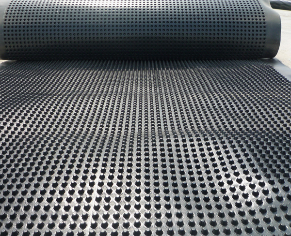 塑料排水板是由聚苯乙烯(HIPS)或者是聚乙烯(HDPE)为原料塑胶底板经过冲压制成圆锥突台或者加筋肋的凸点(或中空圆柱形多孔)而成,抗压强度和整体平整度较高,幅宽有1~3米,长度有4~10米或者以上。